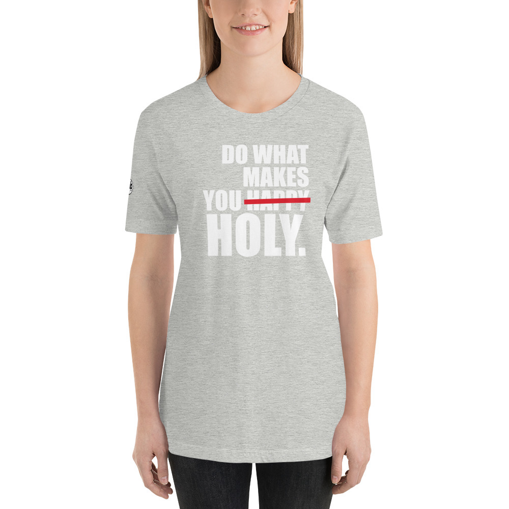 Do What Makes You Holy Women's T-Shirt "gab.com" on right sleeve 100% Airlume combed and ring-spun cotton Navy is 52% combed and ring-spun cotton, 48% polyester Grey and Black are 90% combed and ring-spun cotton, 10% polyester Fabric weight: 4.2 oz/yd² (142 g/m²) Pre-shrunk fabric Side-seamed construction Tear-away label Shoulder-to-shoulder taping
